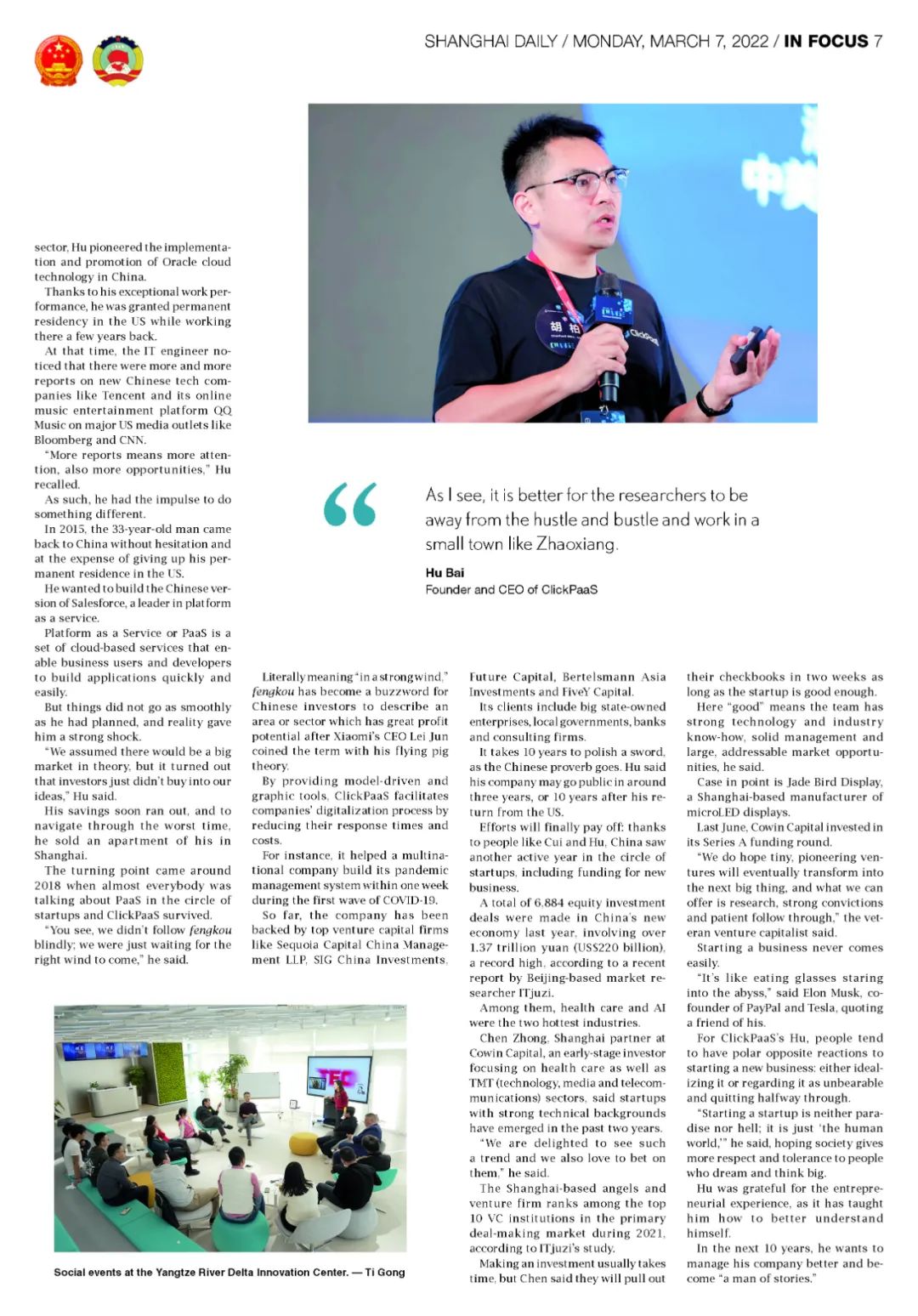 【创业故事】《上海日报》专访爱游戏全站app官网入口创始人、CEO胡柏,探究其创业背后的故事